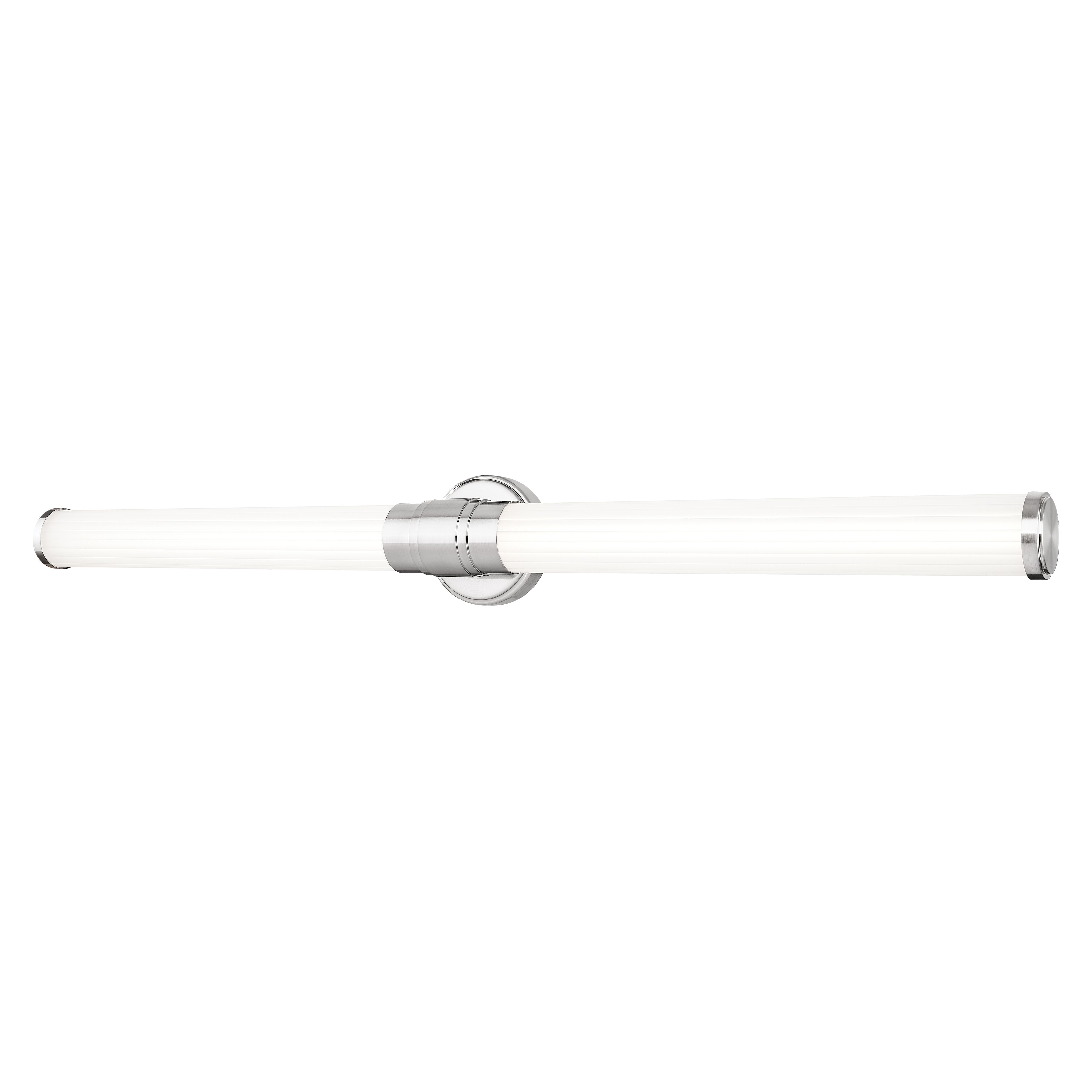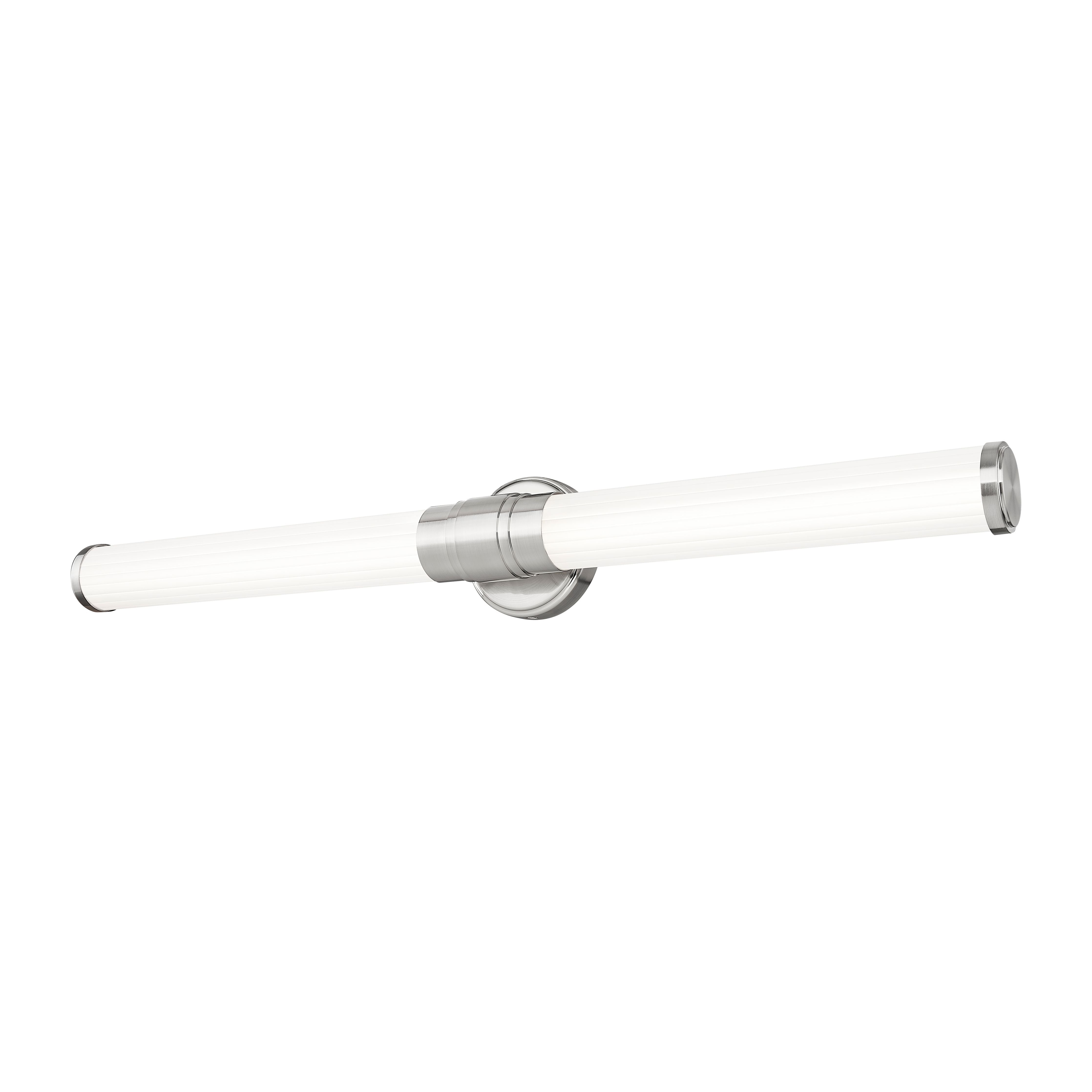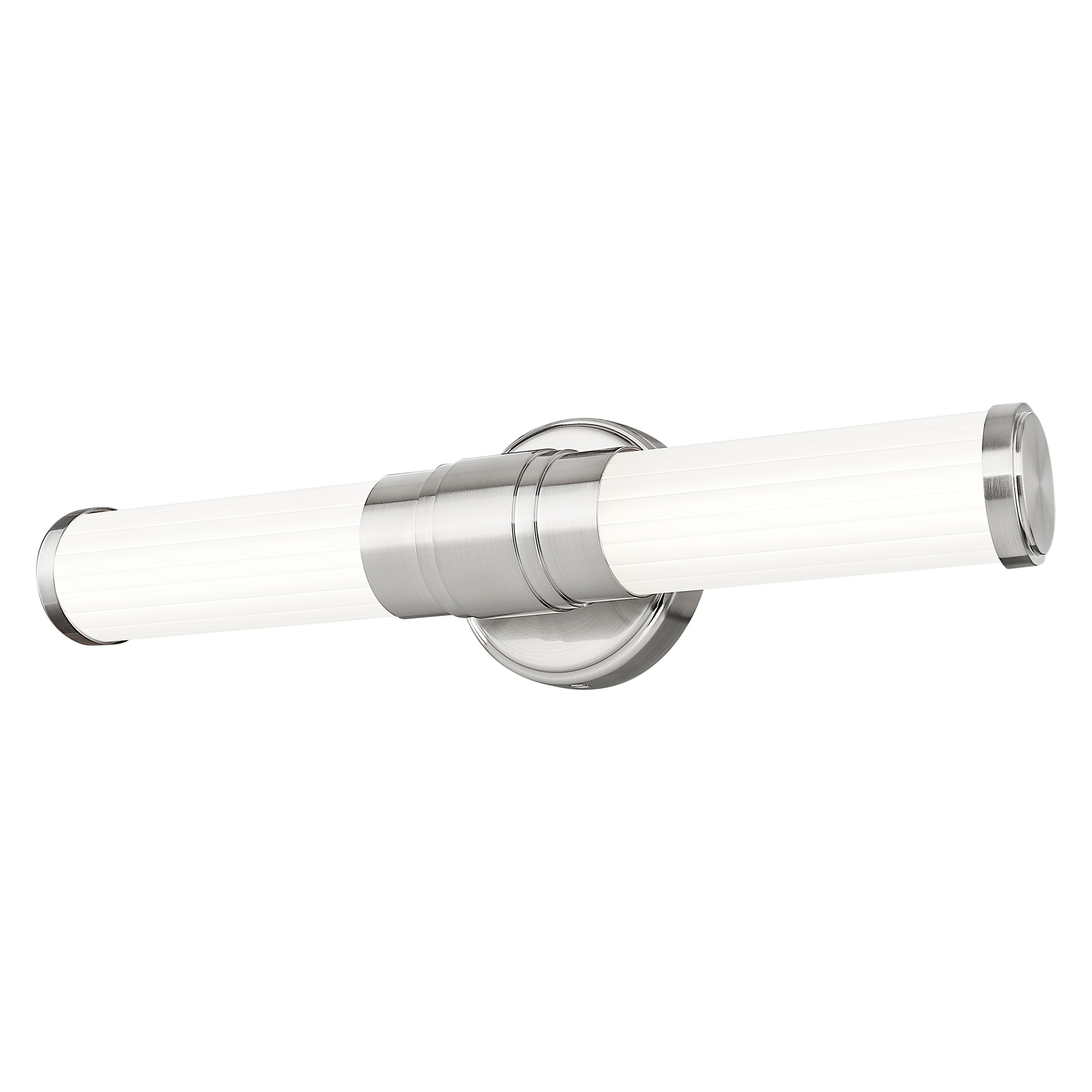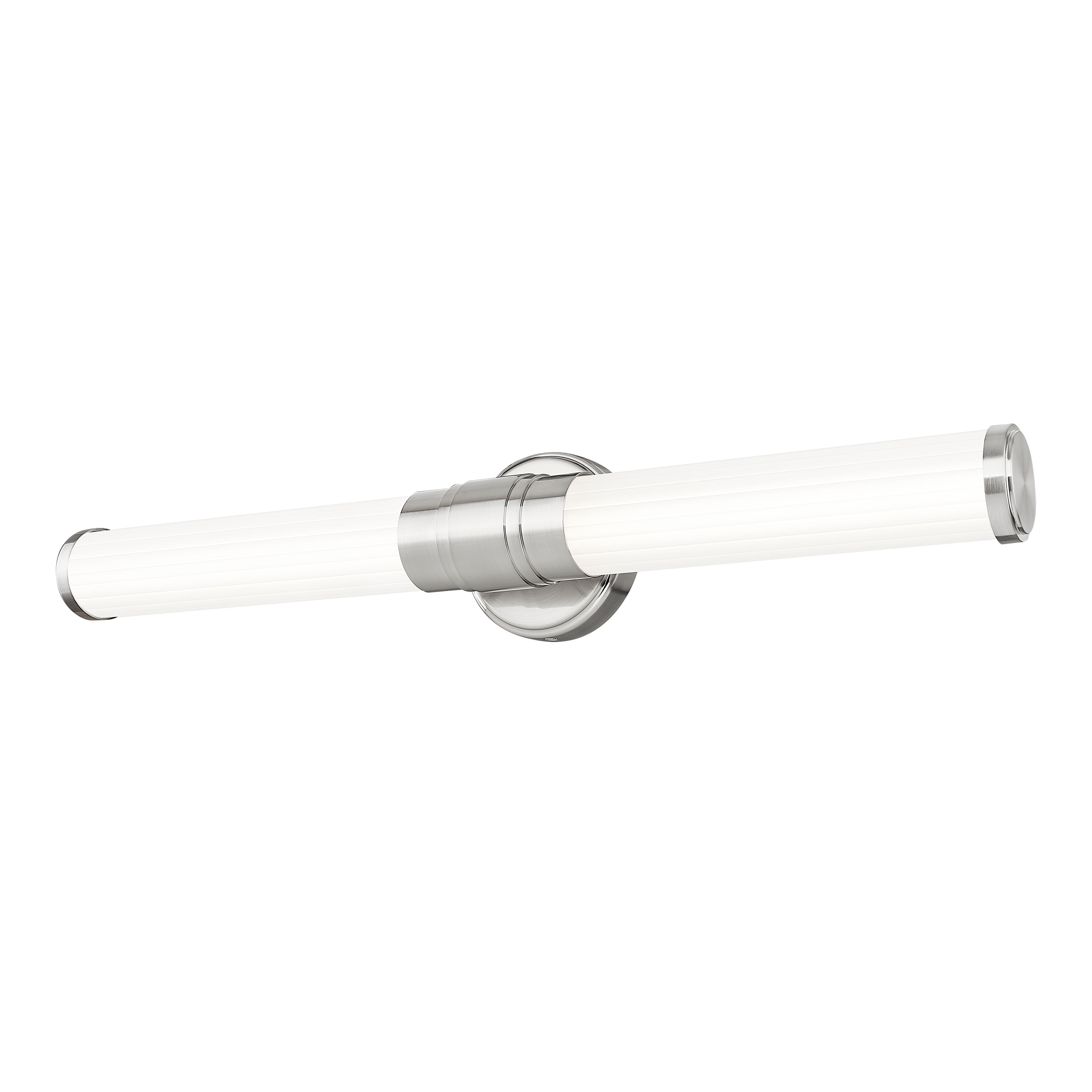 Slender ribbed glass diffusers and a stepped design on the metal arm bring a modern flair to the Warwick bath collection. These fixtures are equipped with the latest energy-saving LED technology, dimmable, light color selectable (5 choices), and a 5-year warranty (LED component). Decorative, detailed metal end caps in the same finish – a choice of Matte Black, Brushed Nickel, Chrome, and Modern Gold – complete the look. Available sizes include 18”, 25”, 32” and 40”, as well as a 16” tall sconce to suit a variety of applications.