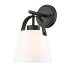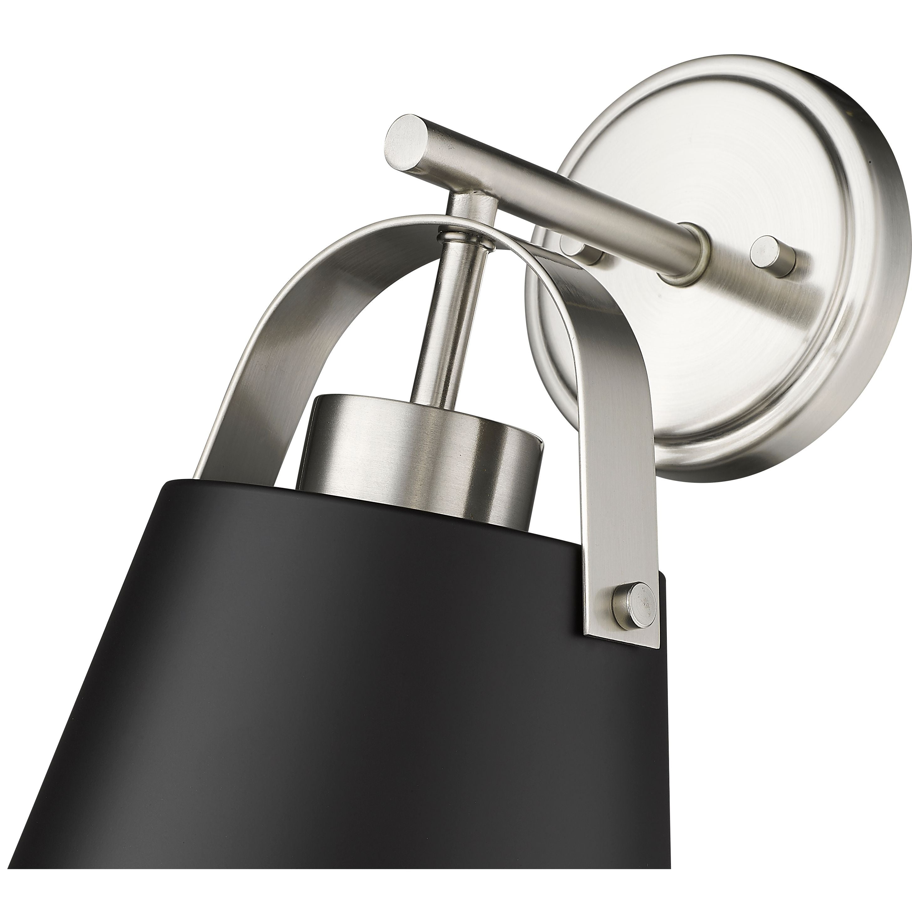 Classic industrial style adds a casual influence to this transitional single-light wall sconce, our latest addition to the popular Z- Studio Pendant family. With a tapered matte black or white shade supported by a rich, detailed metal accent in either a Brushed Nickel or Heritage Brass finish, it makes a superb choice for a modern farmhouse kitchen or Industrial space.