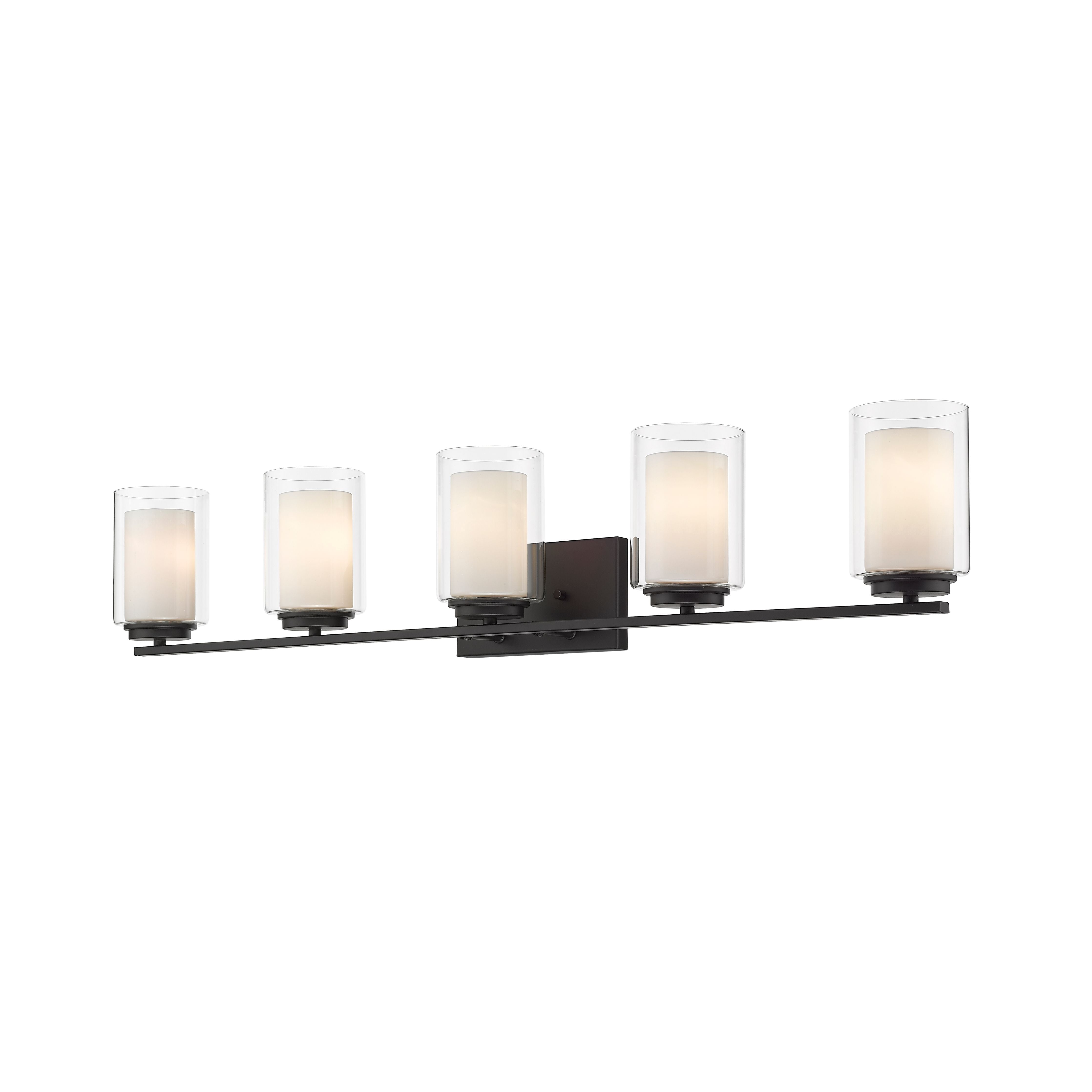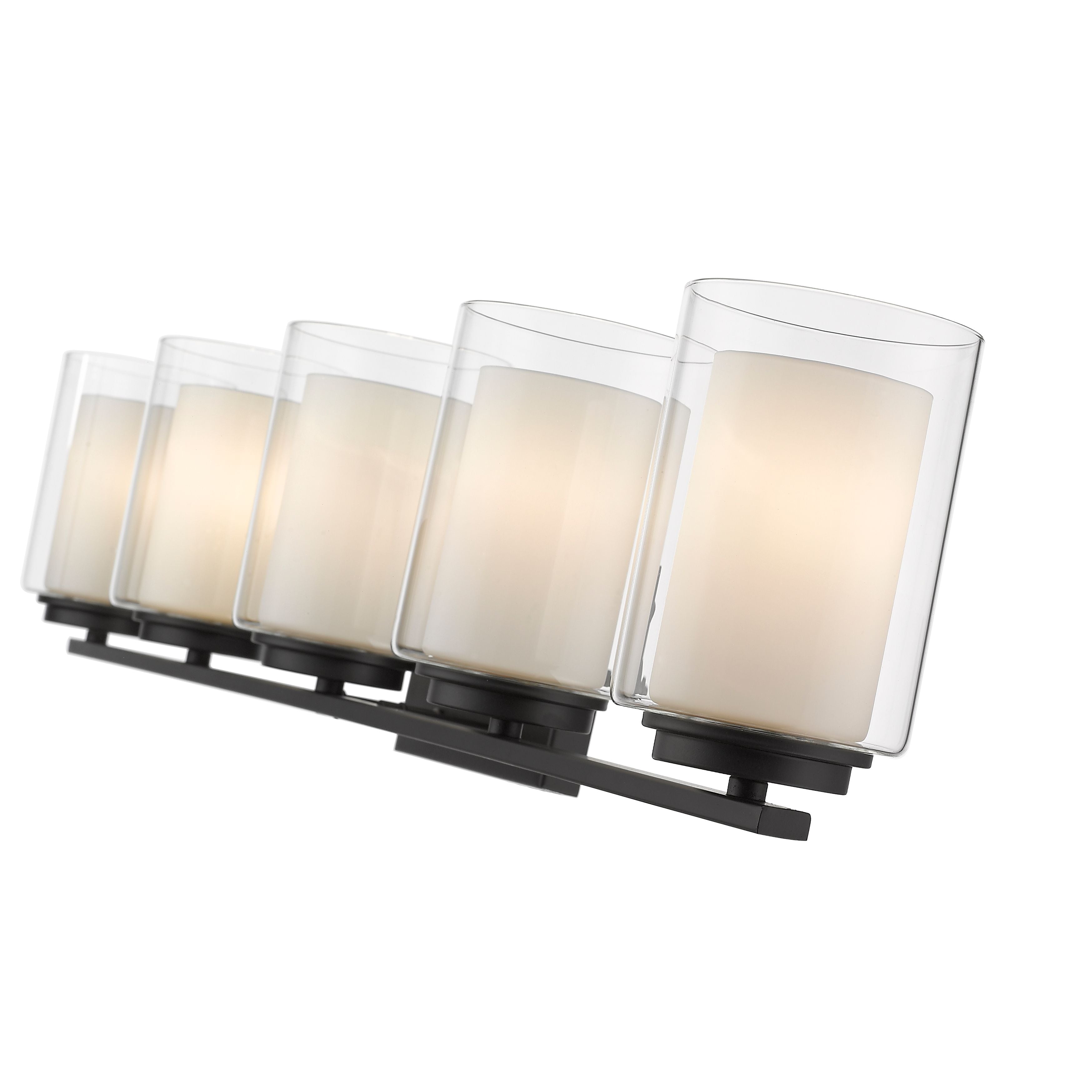 Clean, graceful lines of the arms and glass shades define the Willow family. Matte Black fixtures and inner Matte Opal with Clear outer glass shades, create clean and unique designs.
