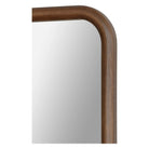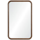 The simple styling of this decorative wall mirror adds an element of industrial décor to classic and contemporary rooms. The natural wood frame incorporates eclectic design details with a rounded pipeline shape and curved corners that soften the rectangular looking glass. A warm walnut brown finish complements the mirror’s humble profile with a neutral color palette that’s lived-in and luxe.