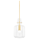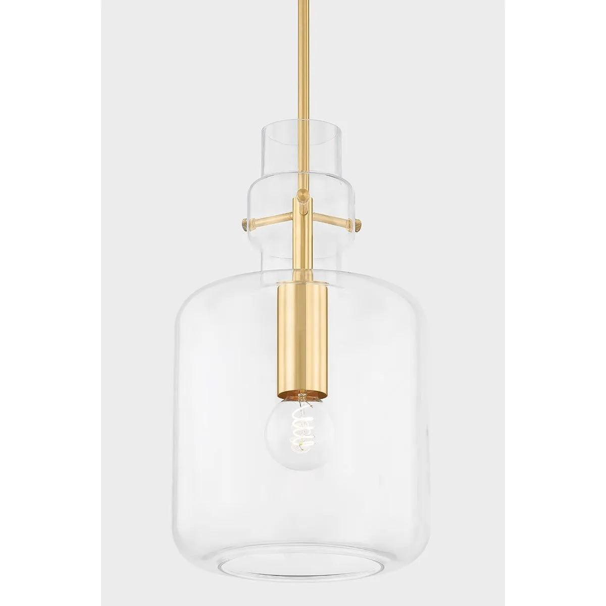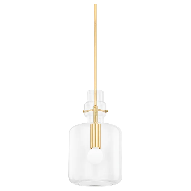 Fresh and playful, Lumi presents a variation of the stacked totem trend using a single piece of glass. The bulbous shade is accented by a sleek Aged Brass frame that is visible through the clear glass. Jewelry-like decorative pins add interest to the minimalist silhouette, which is available in two unique shape options.