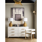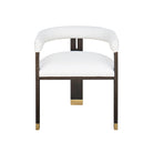 The Jude barrel back dining chair makes a dramatic statement from every angle. Perfectly tailored in crisp white linen upholstery, its oak, tri-leg frame showcases a cerused oak finish and brass ferrule hardware, all combining for a highly sought silhouette. Jude looks great as a pair in your living room or grouped around your favorite dining table.