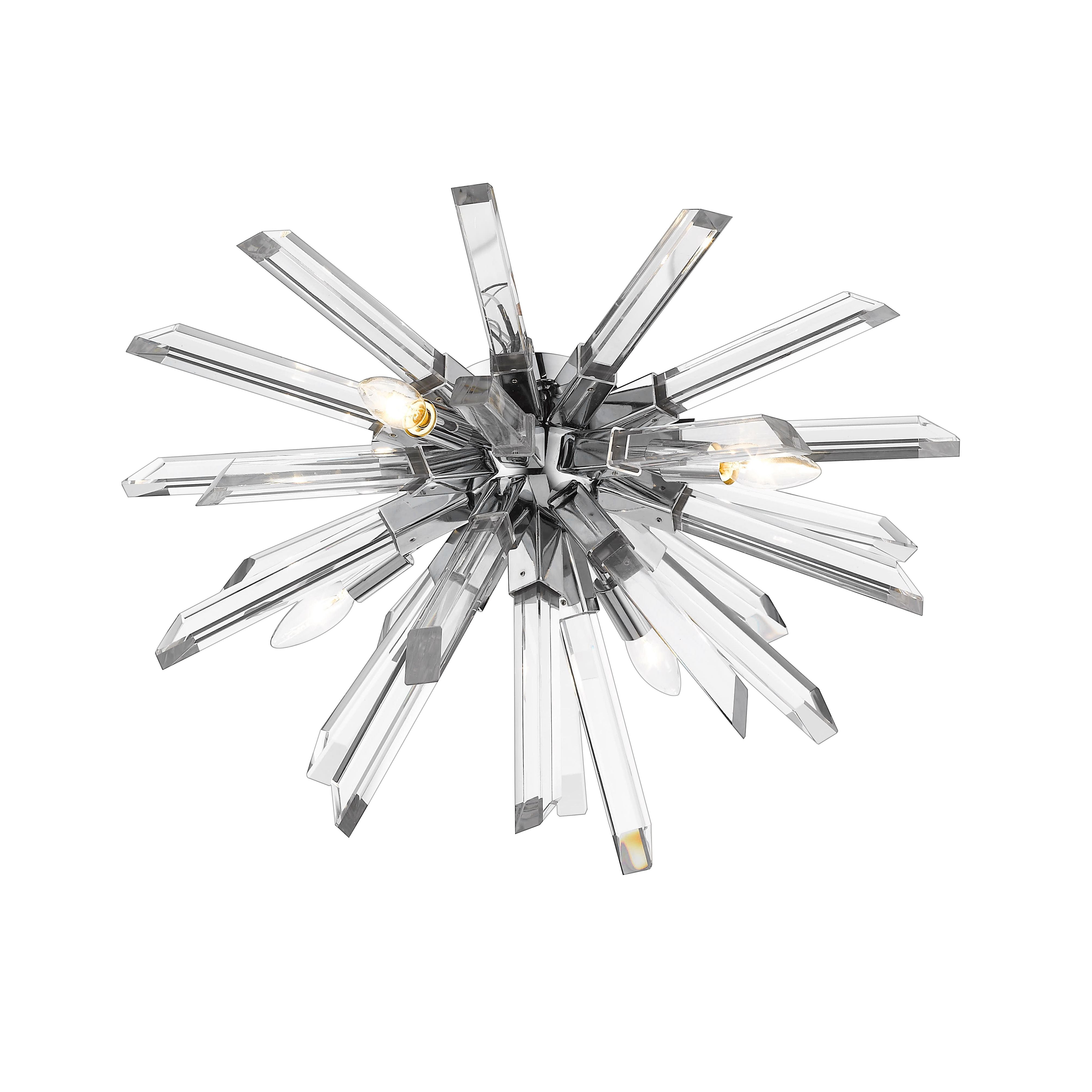 An explosion of beautiful crystal arms extend forth in the Burst collection of crystal fixtures, like stars in the night. The reflective nature of the clear crystal and sleek Chrome finishes make these fixtuers sparkle intensely.